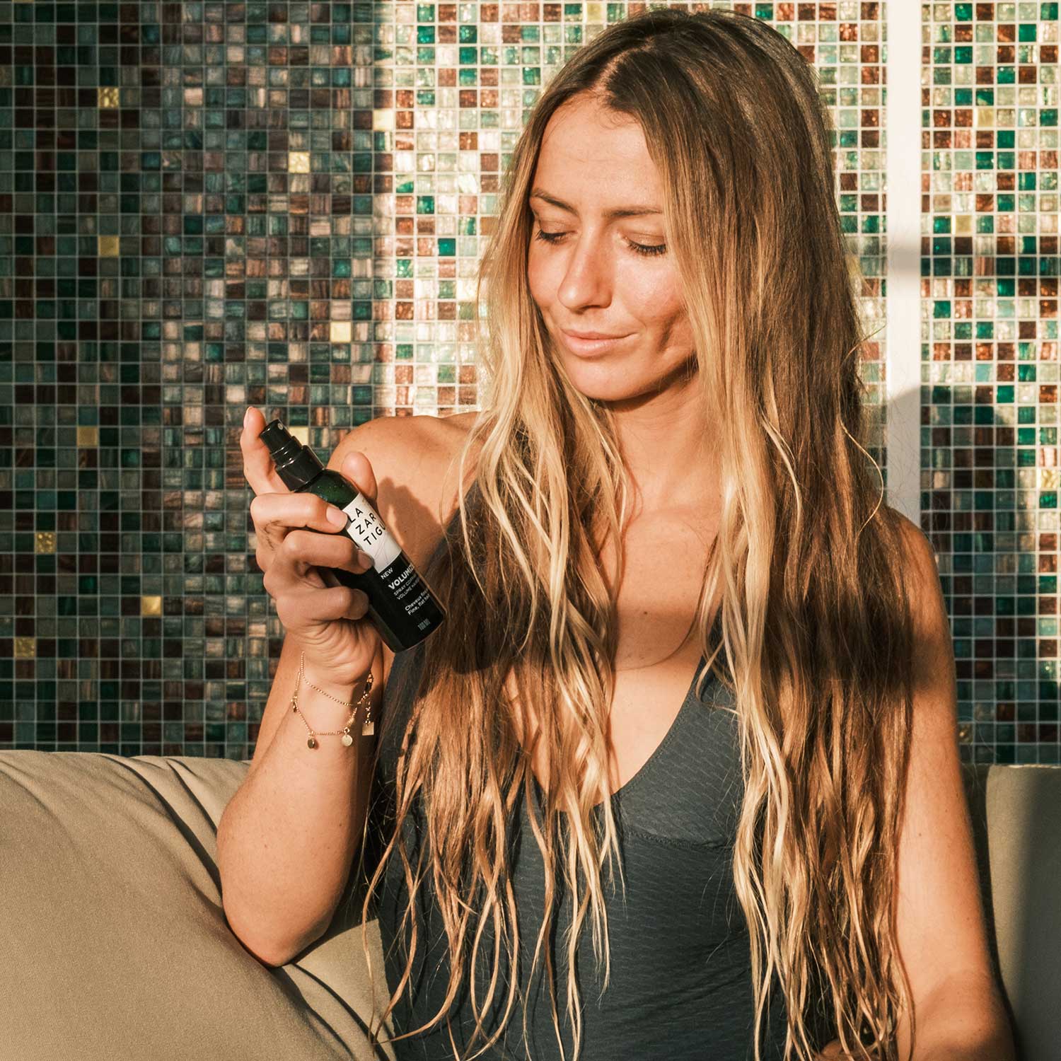 Le geste : Avant de lézarder à la plage ou de plonger dans un bassin naturel, protégez votre chevelure avec un spray anti-UV. Appliquez-le sur vos pointes et sur les longueurs. Le mieux étant de renouveler ce geste toutes les deux heures.