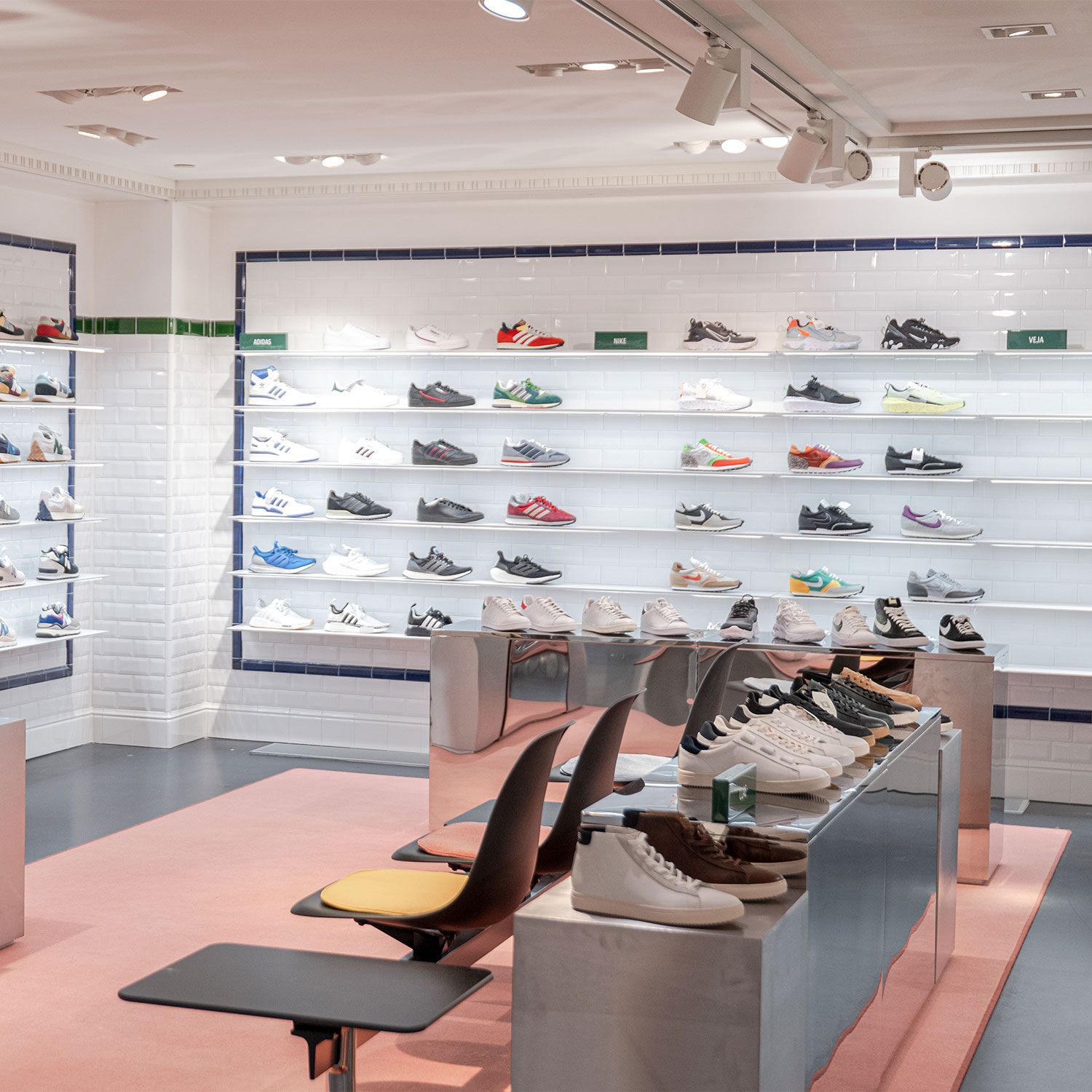 Des collections de jeunes créateurs, un nouvel espace dédié à la maroquinerie, une sélection de pièces pointue qui célèbre un vestiaire modulable et libre, des pop ups exclusifs. Découvrez également le tout nouvel espace dédié à la sneaker et offrez-vous une expérience shopping sportswear et inédite. Plongez dans l'univers animé d'une station de métro avec ses carreaux de faïence, sa signalétique graphique, ses livres et ses sièges rétro.