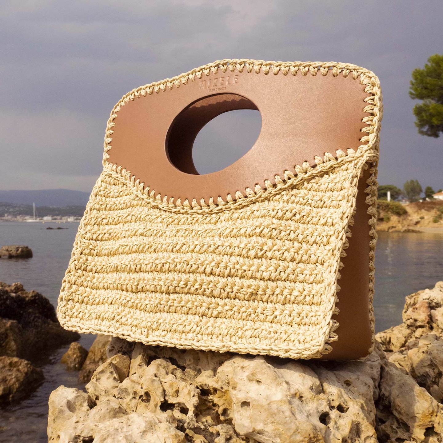 Entièrement fait main avec des anses, un fond en cuir et embossé d'un élégant logo, le filet Mizele s'accompagne d'une pochette dans laquelle ranger objets précieux et essentiels du quotidien. Une déclinaison luxe à retrouver dans diverses couleurs et même en lurex !