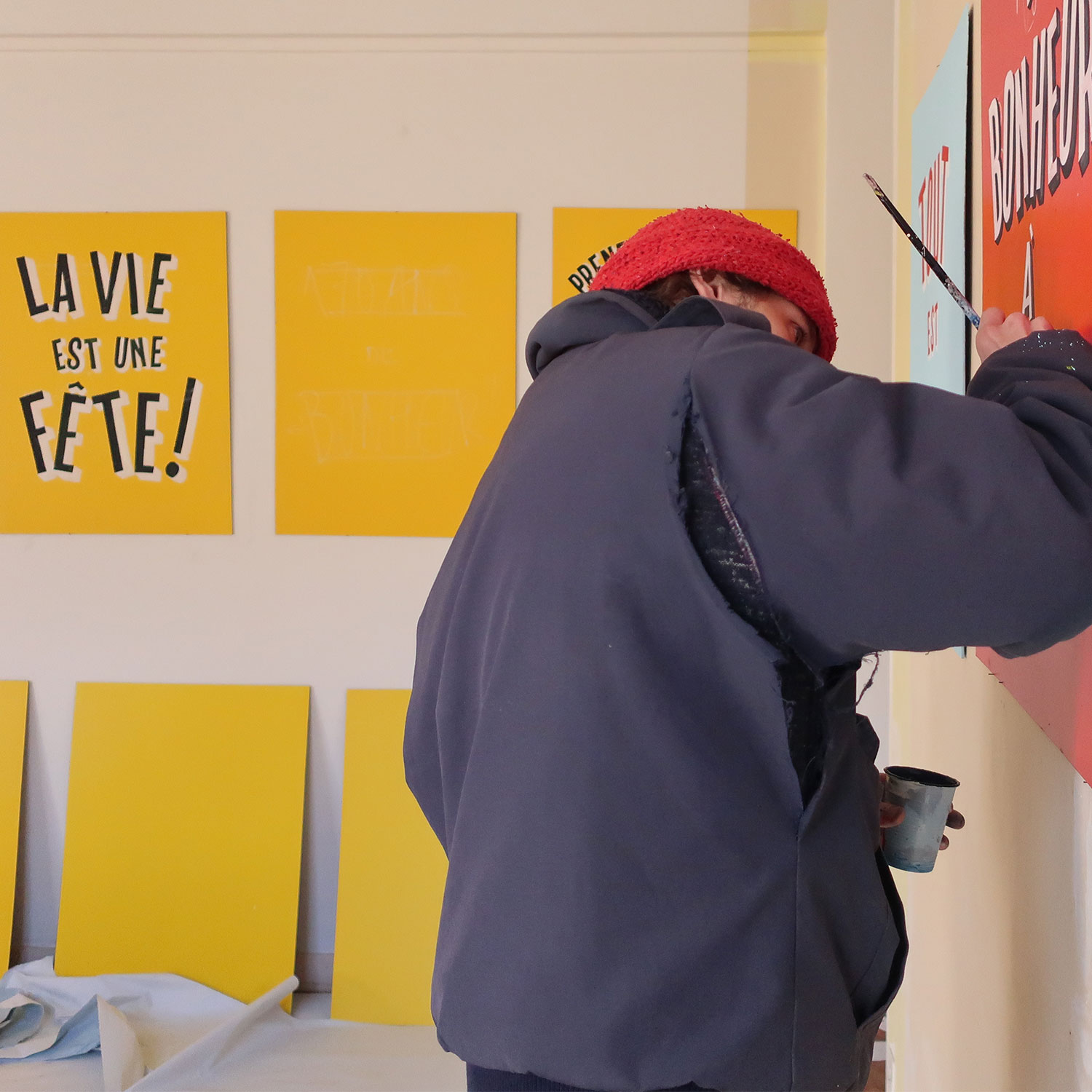 Des jeux de mots ludiques, des images qui font sourire, mêlés à une esthétique d’antan : votre art se distingue par l’énergie positive qui s’en dégage. Pourquoi avoir choisi de vous exprimer selon cet état d’esprit ?