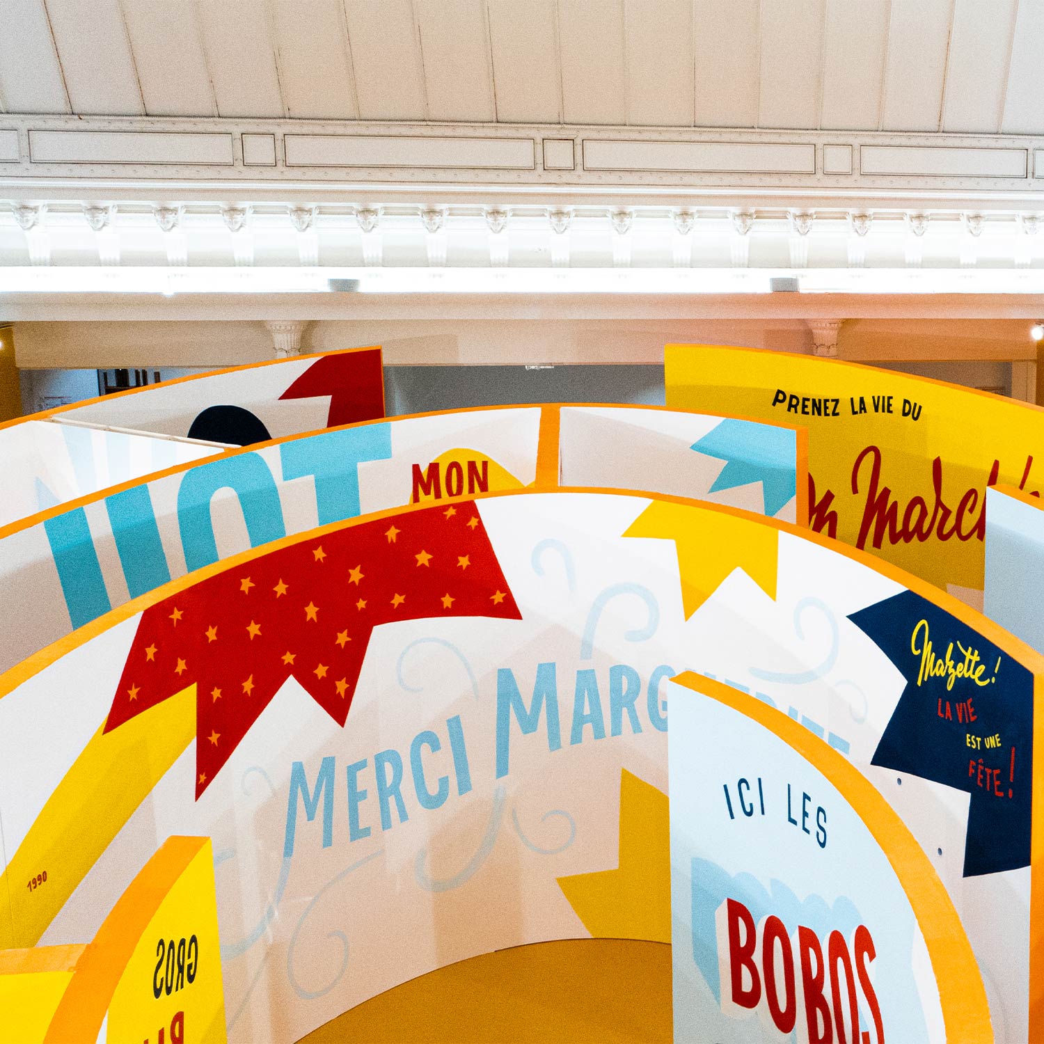 Marin : Nous avons voulu mettre en avant l’esprit de fête associé à ce 170ème anniversaire avec des éléments graphiques colorés et des phrases joyeuses. Ces affiches et jeux de mots se retrouvant partout dans Le Bon Marché, cela donne l’impression aux clients d’assister à un immense goûter d’anniversaire.