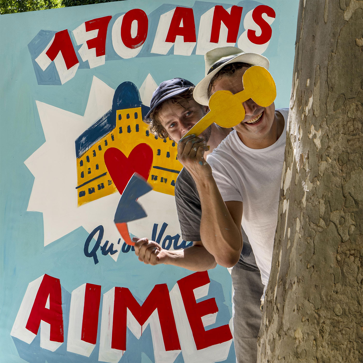 Marin : L’espace public est saturé d’informations, les passants sont sollicités en permanence. Nous avons à cœur de produire des pubs « gratuites » inspirées du ton désuet des réclames des années 50 pour « vendre » la lenteur, la joie, l’amour. Le défi est de décrocher un sourire ou de mettre un peu de baume au cœur avec des messages positifs, un peu naïfs mais universels.