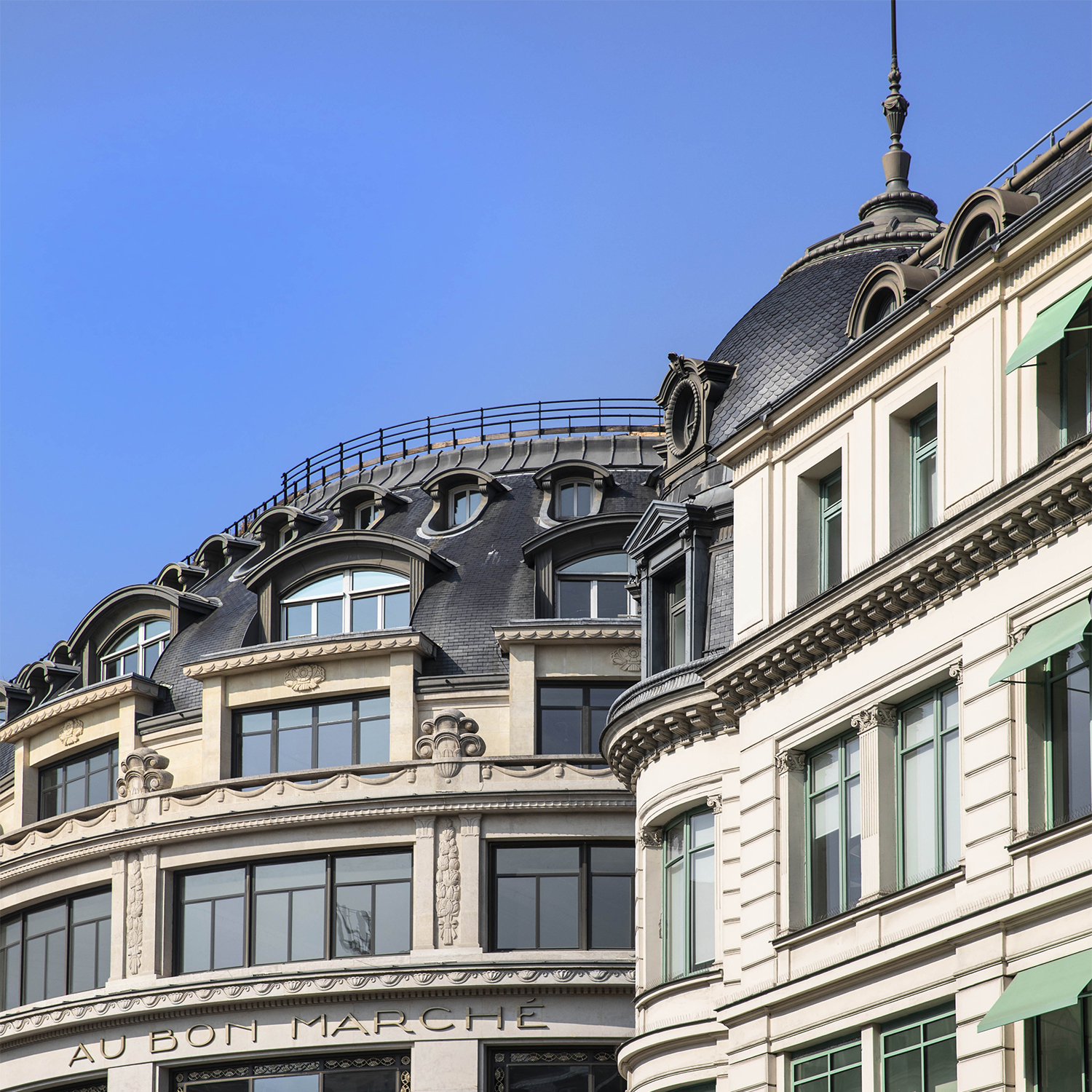 Légende : Façade du Bon Marché Rive Gauche et de La Grande Épicerie Rue de Sèvres.