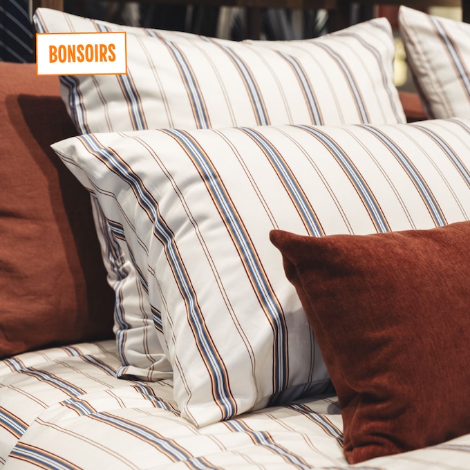 « Bonsoirs apporte une énergie nouvelle au linge de maison. Maître dans l’art du motif, la marque ose les mélanges et invite à jouer avec les imprimés pour créer un univers contemporain et audacieux. Une façon simple et joyeuse de renouveler sa chambre et d’exprimer sa personnalité et son humeur du moment à travers le linge de lit. »
