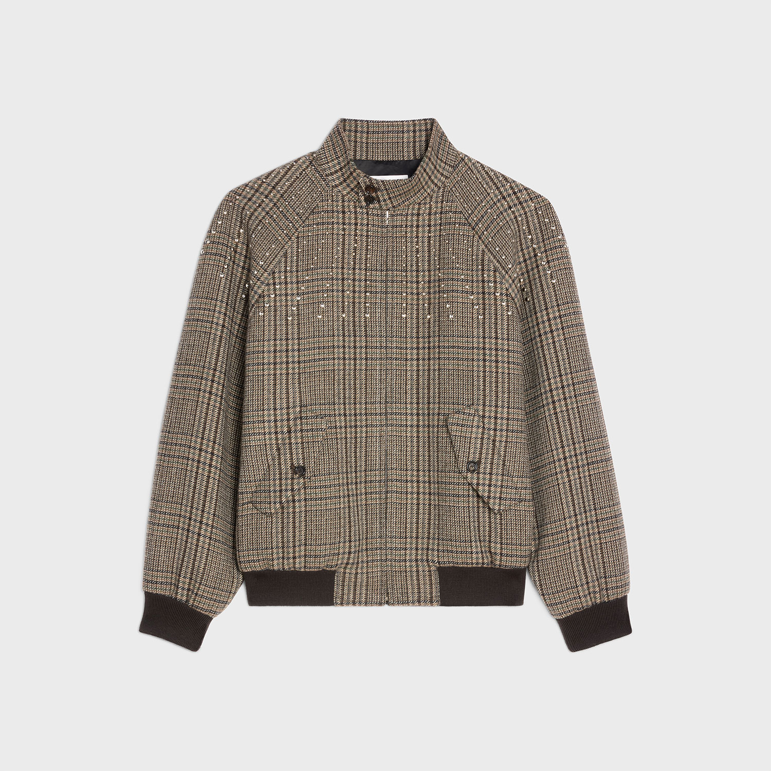 ©CELINE, Teddy col montant broderie studs laine carreaux hunting.