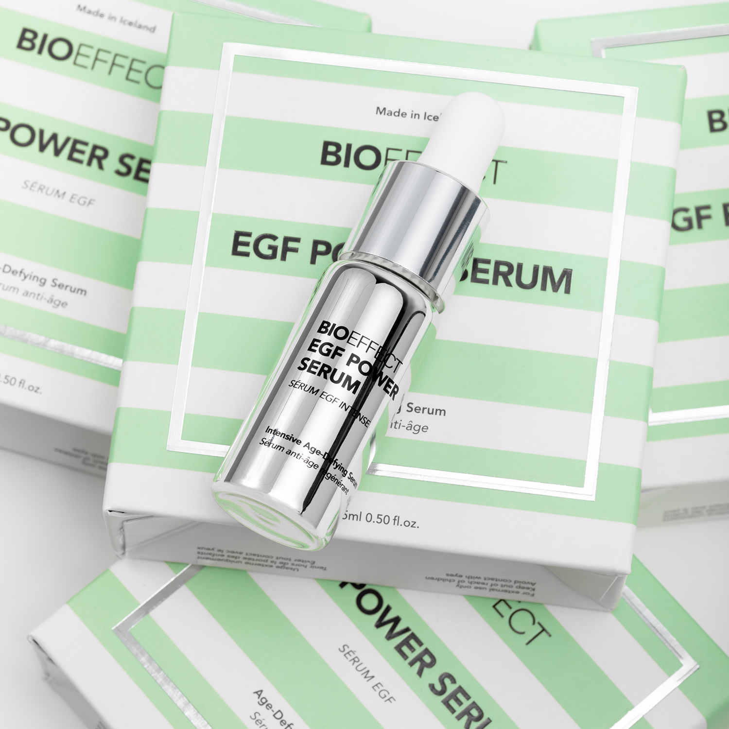 Cet hiver la marque islandaise de soins lance le Power Sérum EGF, un soin anti-âge enrichi en facteurs de croissance végétaux. Ce sérum à la texture soyeuse combine 12 ingrédients dont l‘acide hyaluronique et deux protéines végétales, identiques à celles de l’homme : l‘EGF et le KGF d'orge. Toutes ces protéines sont produites en Islande, dans la serre écologique de BIOEFFECT, alimentée par l‘énergie géothermique.