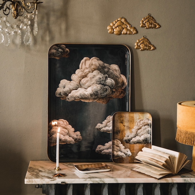 Chaque plateau émaillé est dessiné par Camille et Justine. Ils sont délicatement sublimés par une bordure dorée, peinte minutieusement par les artisans de leur atelier indien. Chaque modèle raconte une histoire et peut être accompagné par d’autres créations afin de créer une jolie collection.