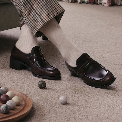 Évolution du mocassin emblématique Shanghai, cette réinterprétation féminine reste fidèle à l’esprit du modèle original de 1929. Chaque paire, fabriquée en moyenne en 200 étapes, est une pièce unique.