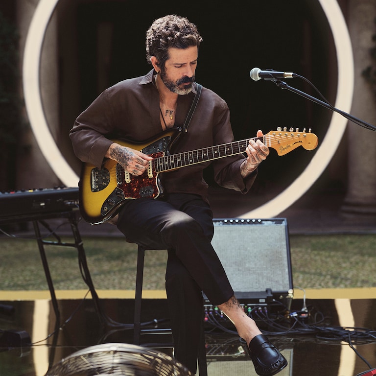 Un soleil qui ne s’éteint jamais éclaire le vestiaire masculin. Style et art se rencontrent lors d’une performance live signée par trois figures visionnaires de la musique contemporaine. Devendra Banhart, icône de la contre-culture rock californienne, et Keziah Jones, guitariste-percussionniste nigérian et créateur du blufunk, se succèdent dans une fusion de rythmes en perpétuel mouvement. Les mélodies au piano de Mattias Mimoun, DJ et producteur français, brouillent les frontières entre jazz, électronique et pop.