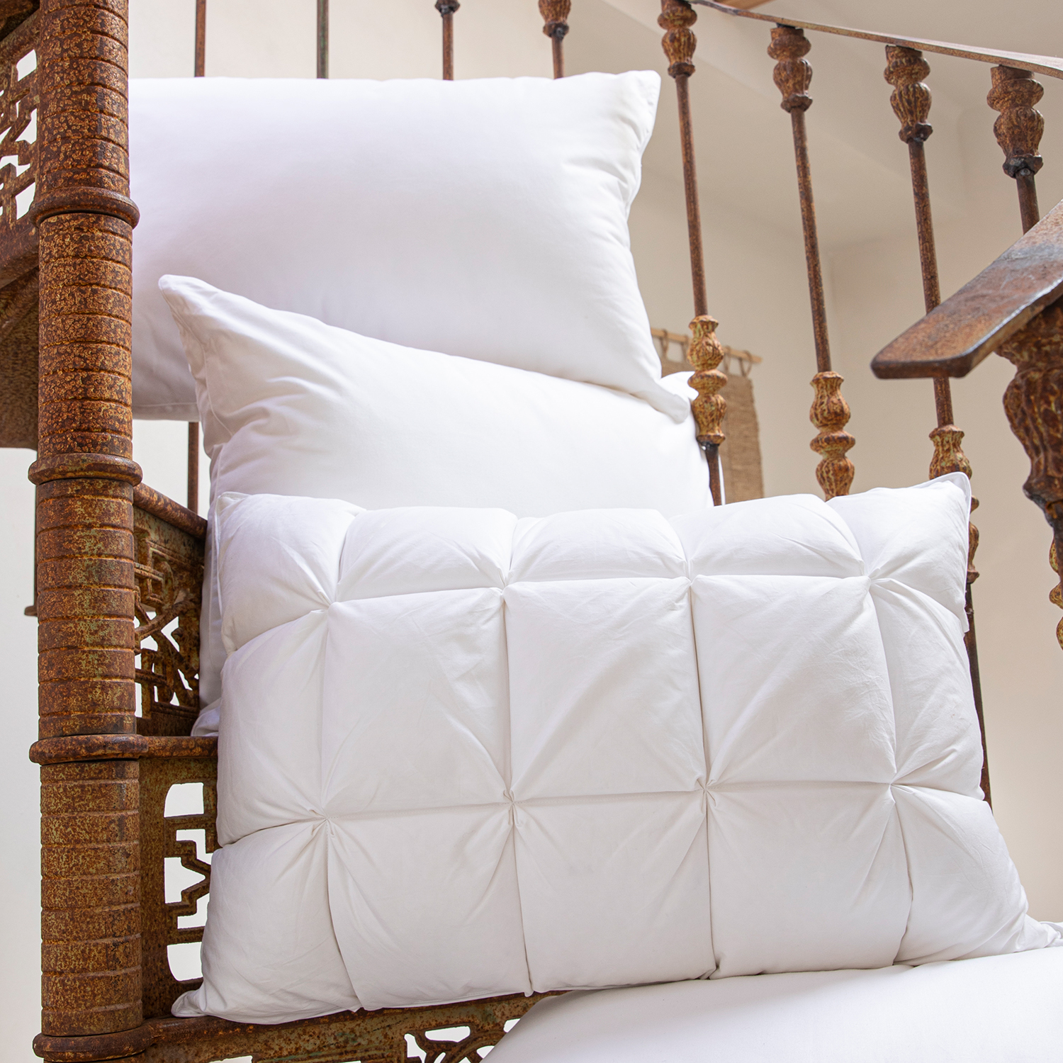 Conçu pour offrir un moelleux inégalé, cet oreiller se distingue par son enveloppe supérieure composée de mini compartiments en satin de coton, garnis à 90 % de duvet et plumettes de canard. Cette conception exclusive procure un accueil à la fois léger et enveloppant. Le cœur de l’oreiller assure un soutien précis et équilibré, garantissant un maintien optimal tout au long de la nuit. Cette combinaison harmonieuse allie douceur et technicité, pour un sommeil profond et réparateur.