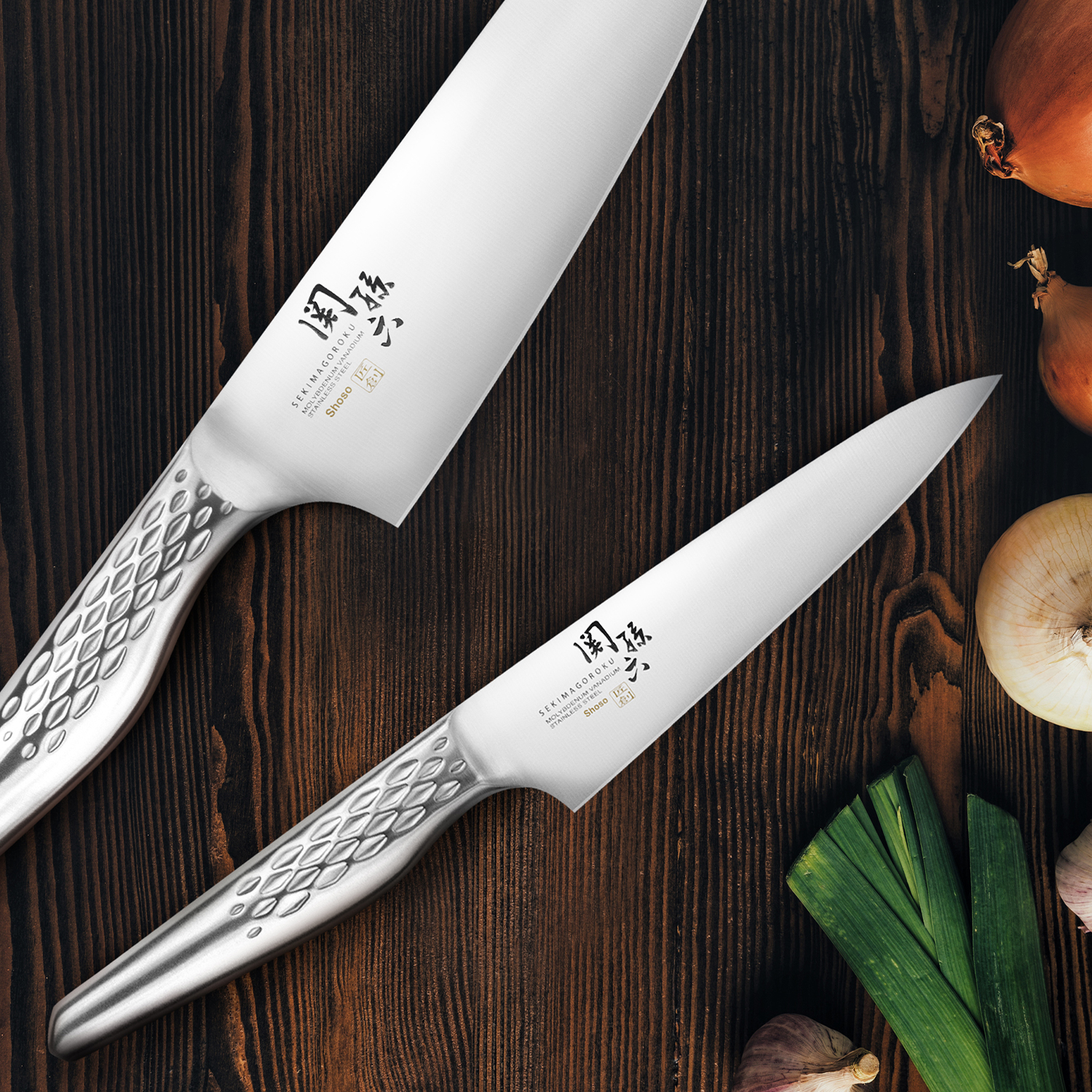 Lame Shoso avec une dureté de 56 (±1) HRC pour une coupe durable et précise. La finition mate ajoute une touche d'élégance. Le manche mat en inox 18-8 est robuste, symétrique et ergonomique avec un motif à losanges intégré pour une coupe professionnelle. Une fusion entre le manche et la lame pour un couteau épuré et performant.