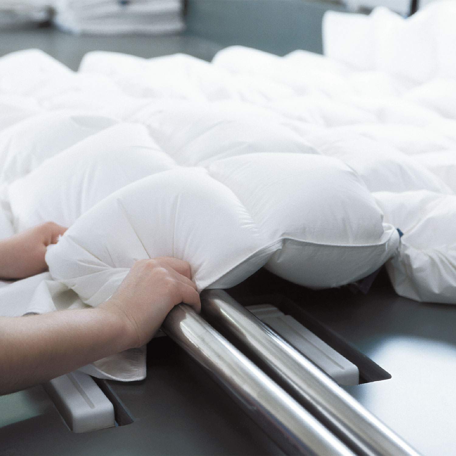 Bon à savoir : chacune des étapes de la production est réalisée au sein de ses ateliers en Allemagne, de la sélection au nettoyage du duvet, jusqu’à la dernière couture du produit.