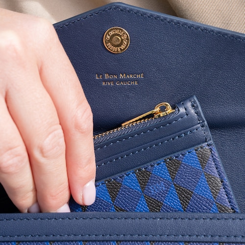 Entre autres les collections de maroquinerie capturent l'esprit de l'air du temps, alliant savoir-faire traditionnel et touches de modernité. Parmi celles-ci, la collection « Prisme » se démarque par son utilisation d’un motif issu de ses archives sur une toile enduite et des finitions en cuir, offrant des pièces à la fois résistantes et esthétiques. L'association de ces matériaux certifiés GRS et LWG confère aux sacs et petites maroquineries une allure contemporaine, idéale pour la clientèle exigeante du grand magasin parisien.