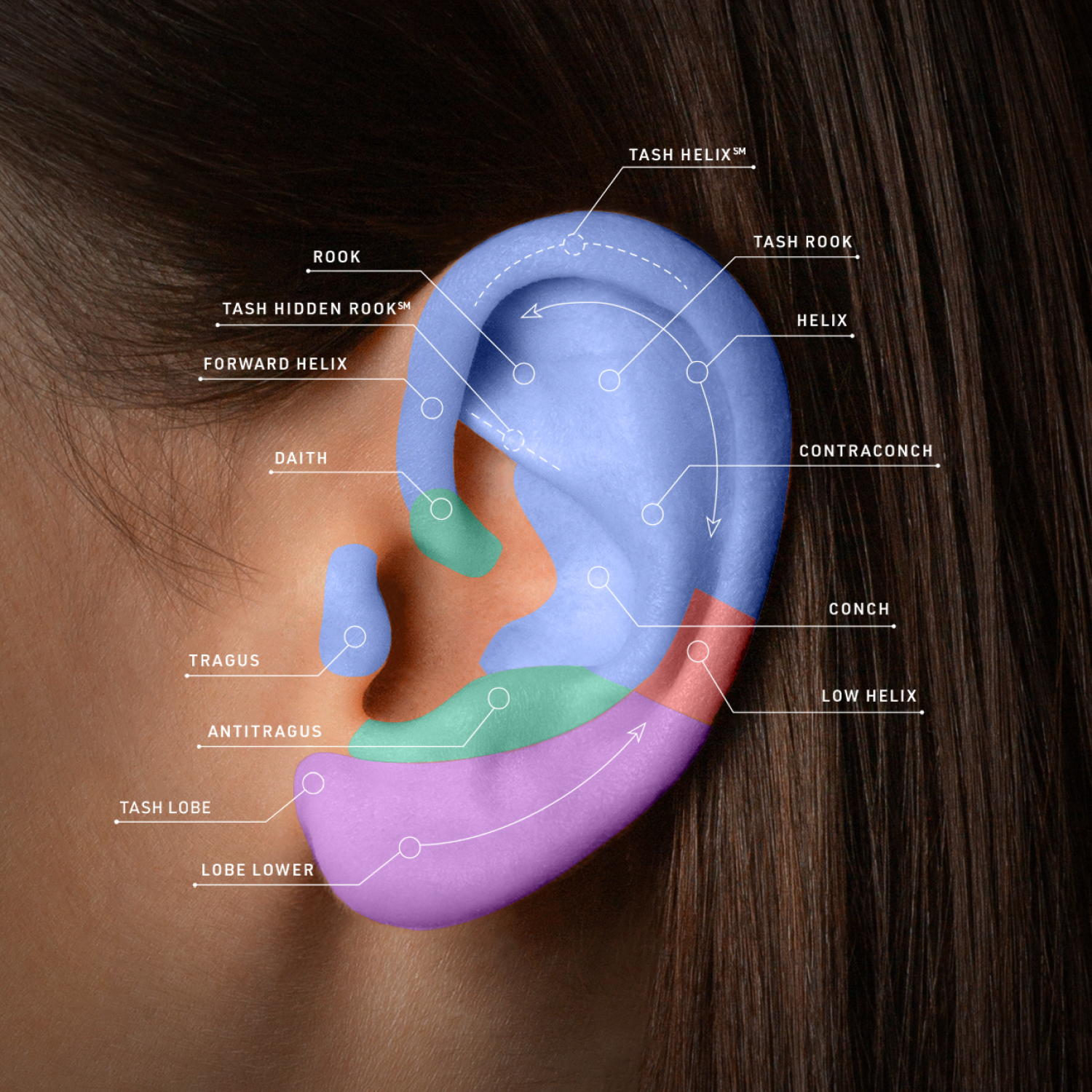 L’emplacement et les angles : les perceurs adaptent leur travail à la morphologie de chacun, afin que l’angle choisi détermine l’emplacement final du bijou. Ils prennent également en considération les piercings existants, afin de créer une composition harmonieuse.