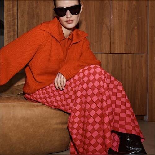 Robes longues, jupes plissées, pantalons fluides à taille haute, polos, hauts en maille fine à col volantés, les collections Molli se renouvellent sans cesse et sont tricotées par des ateliers en France et en Italie au savoir-faire d’excellence.