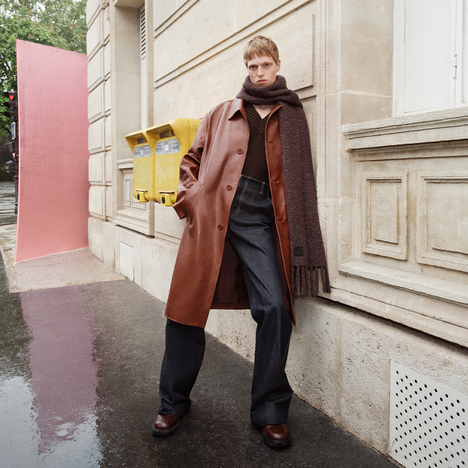 Pour l'automne hiver 2024-2025, Sandro présente une collection masculine aux matières variées et aux coupes fluides.