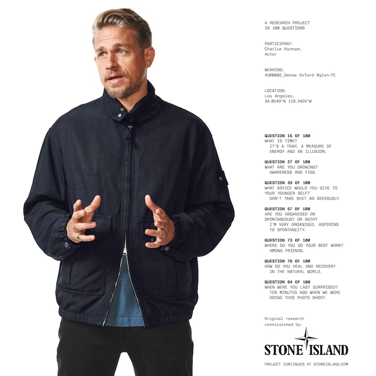 Pour la saison, Stone Island développe Denim Research, une collection qui réinvente le vestiaire estival. Les pièces jouent avec les nuances d’indigo et les effets délavés, combinant légèreté et innovation. Les matières, comme le nylon à fibres creuses, viennent enrichir un vestiaire graphique et contemporain. Chaque vêtement est signé du nouveau badge noir Denim Research, orné du logo Compass bleu indigo, symbole du savoir-faire et de l’expérimentation permanente de la Maison.