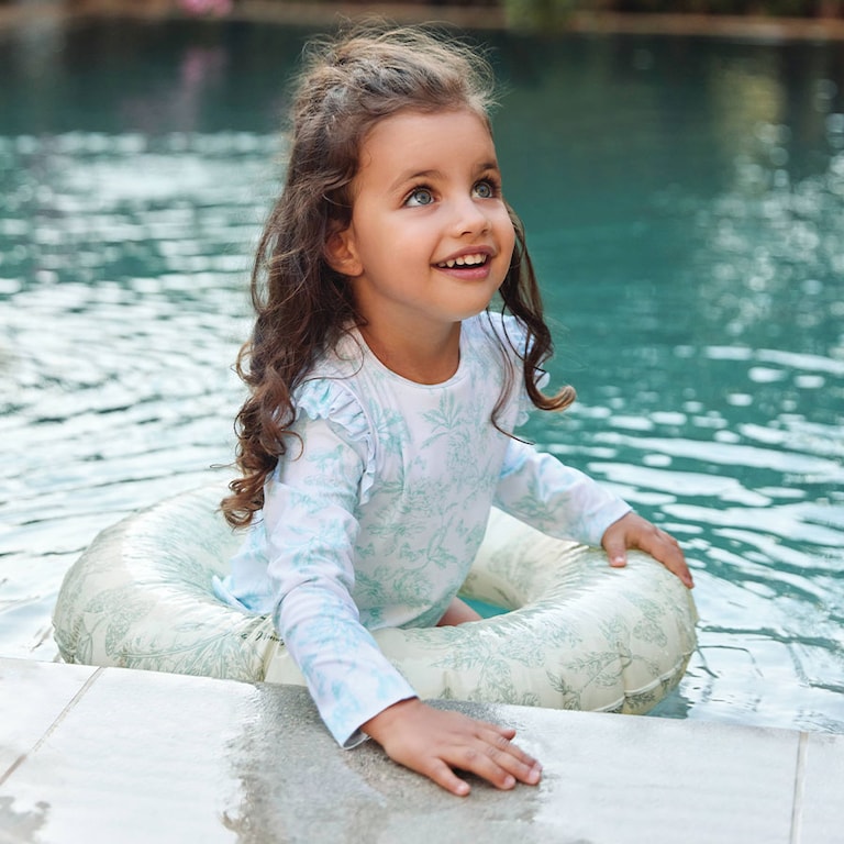 Pour les tout-petits, la ligne « Son premier été » enveloppe chaque silhouette de douceur, avec des matières légères et des tonalités apaisées, pensées pour accompagner leurs premiers instants estivaux avec délicatesse.