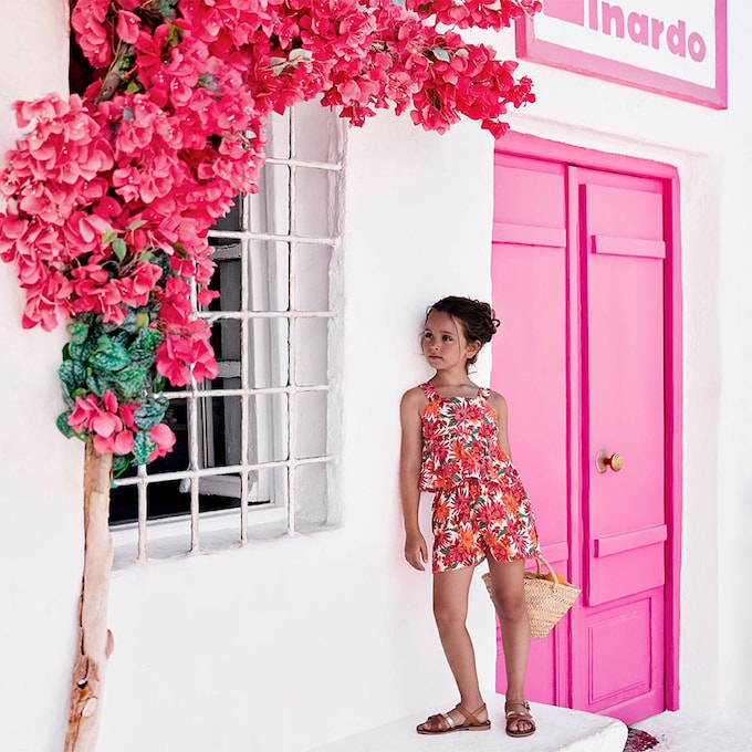 La collection printemps-été 2026 traduit cet horizon méditerranéen à travers une palette subtile. Le bleu profond de la mer dialogue avec la blancheur éclatante des façades, tandis que de délicats imprimés fleuris, aux nuances de rouge orangé, évoquent les jardins ensoleillés de l’île.