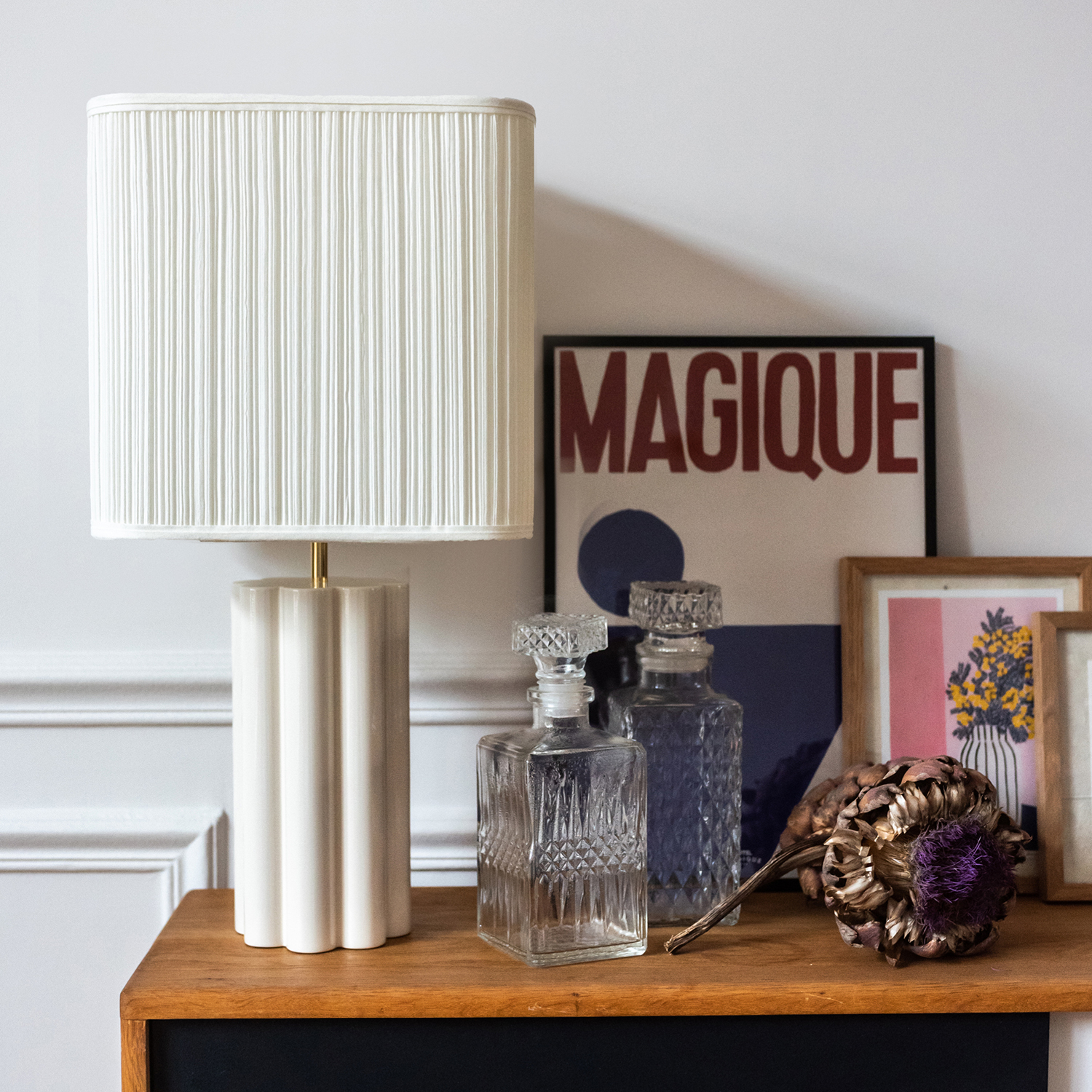 L’iconique lampe à poser Gioia est une pièce sculpturale. Pensé par le studio de création de The Socialite Family de son pied en bois laqué semblable à une fleur à son abat-jour au plissé couture évoquant celui d’une robe, ce luminaire est la signature de la marque.