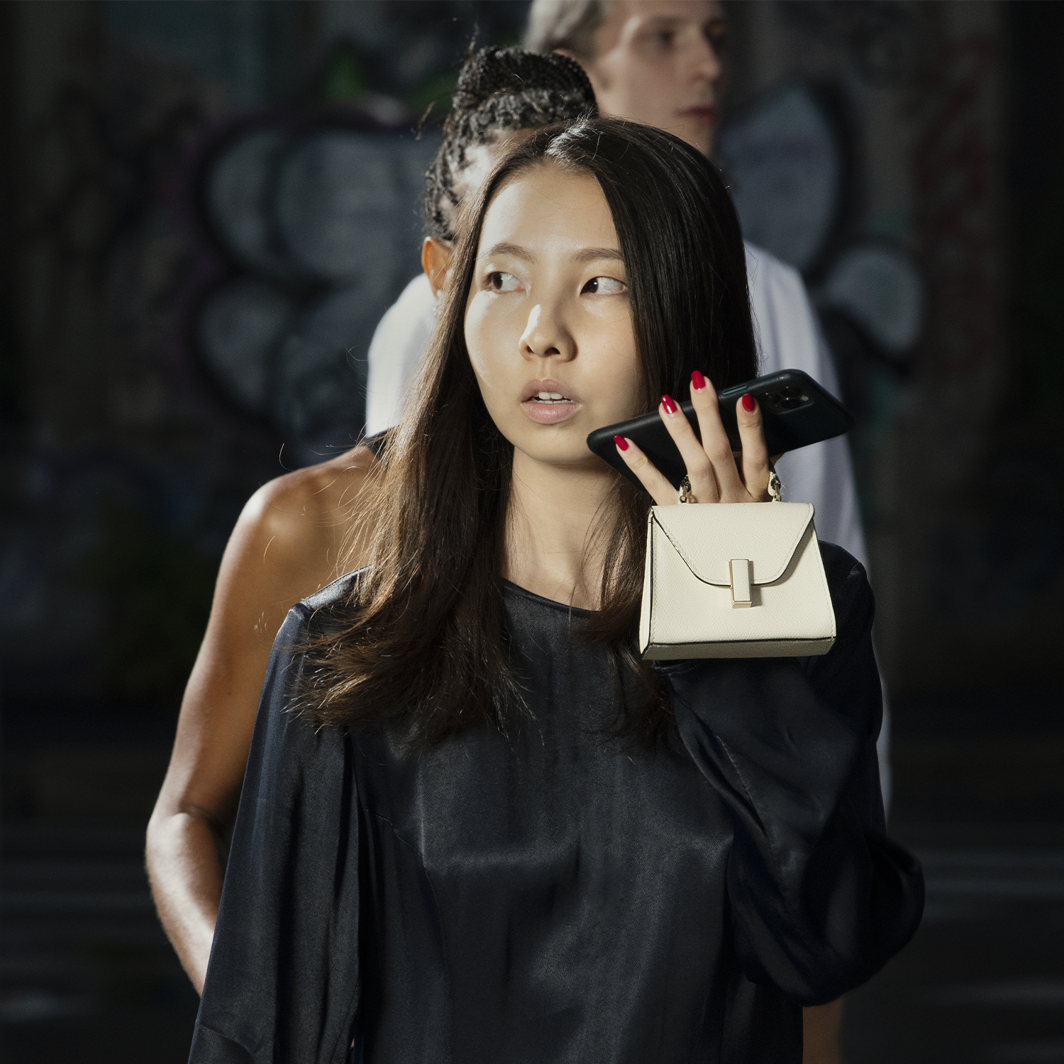 Symbole de l’élégance féminine à l’italienne, l'Iside Bag, est l’icône de la Maison Valextra. Compact et toujours facile à assortir, il se porte aussi bien à la main qu'en bandoulière. Son design unique allie inspiration classique et esprit moderne, il se distingue par sa forme pyramidale, en cuir de veau au grain doux. Versatile, il se porte aussi de jour comme de nuit et est suffisamment grand pour tous vos objets essentiels.