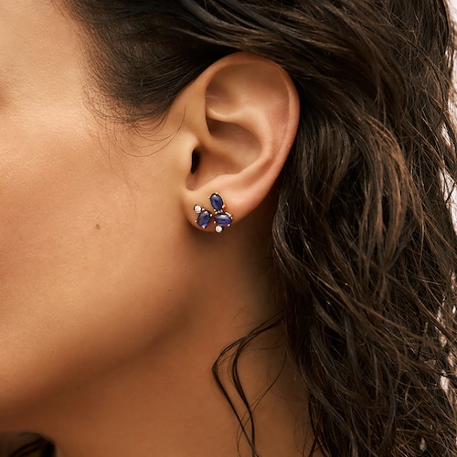 Évocation des eaux de la mer Égée, Stala associe pierres cabochons bleues et diamants scintillants. Des créations qui incarnent la pureté et la sérénité de la nature grecque.