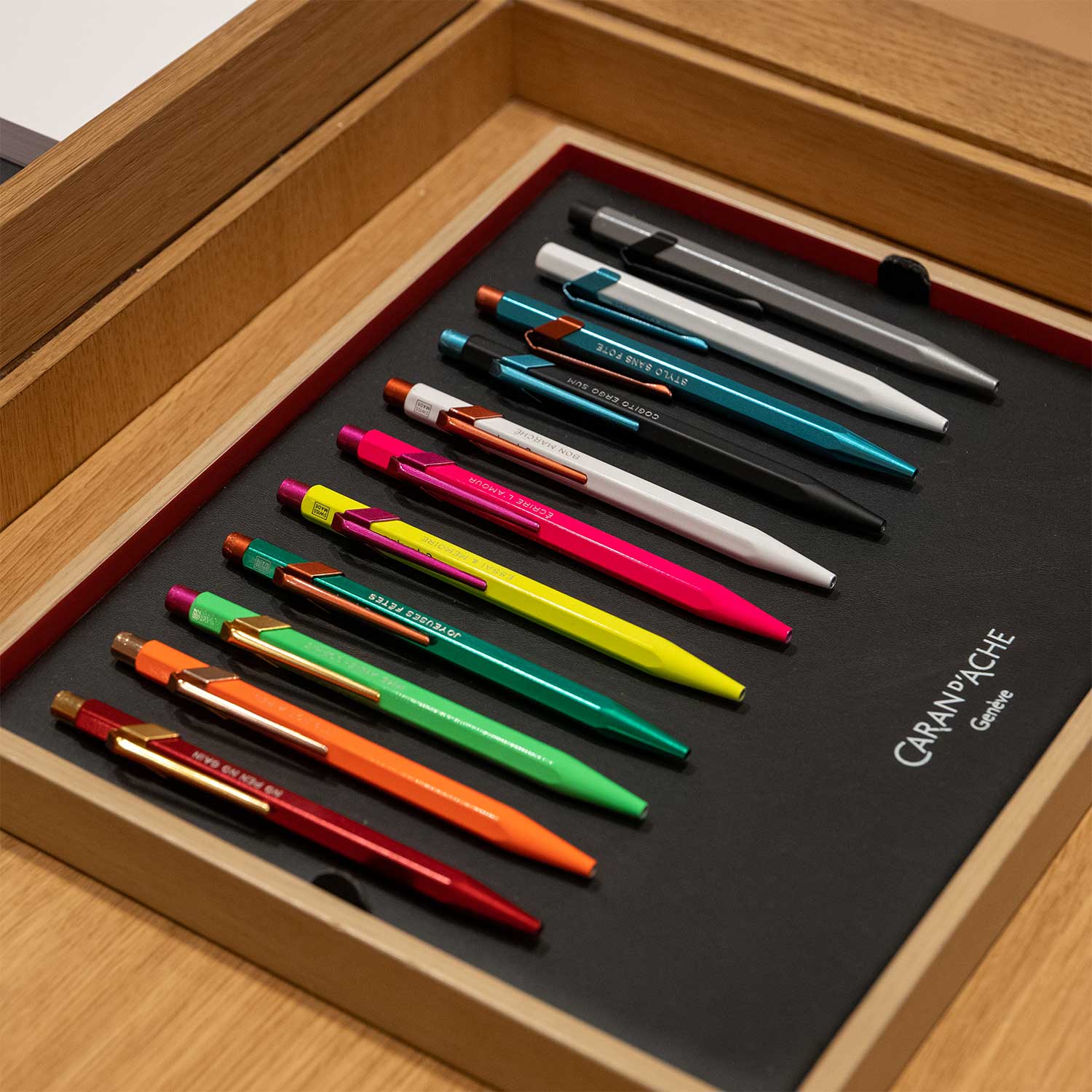 Avec Caran d’Ache, l’iconique stylo-bille 849 se décline à l’infini. De la couleur du corps, au bouton, en passant par le clip et l’encre, le stylo est désormais 100 % personnalisable créant ainsi une pièce unique à (s)'offrir. Pour une touche encore plus personnelle, il est possible de le graver d’un mot doux, d’une phrase... ou même d'un emoji !