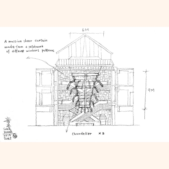Song Dong transforme les 21 vitrines du Bon Marché Rive Gauche en installations artistiques. L'artiste met en scène des objets du quotidien, à la fois issus de sa collection personnelle et des objets prêtés à la suite d'un appel à participation lancé en octobre 2025, par les clients et collaborateurs du Bon Marché. Miroirs, luminaires suspendus et fenêtres colorées, éléments distinctifs de son œuvre, subliment ces objets, tout en rendant hommage au concept du ready-made de Marcel Duchamp.