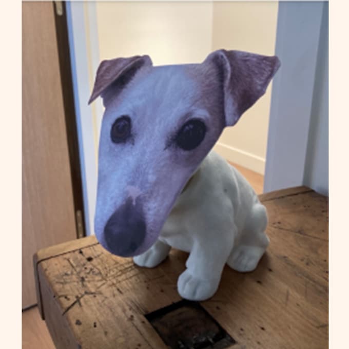 Figurine représentant Dagobert, le chien aujourd’hui disparu du Directeur Artistique et Image, réalisé dans le cadre d’une exposition autour des chiens au Bon Marché.